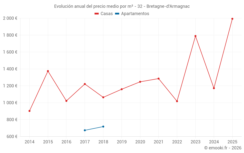 ¿Cuál es el precio por m2 de las casas en Bretagne-d'Armagnac?