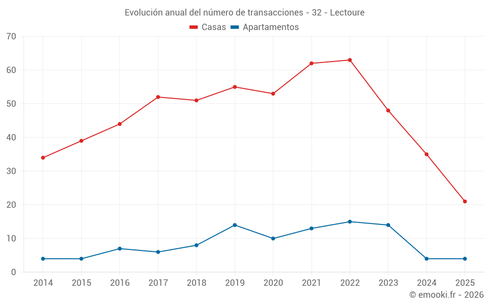 El precio mediano en las 21 transacciones de casas de los últimos 6 meses en la comuna de Lectoure fue de 1 828 € por metro cuadrado para un valor patrimonial medio de 180 000 €. Durante este período el 60% de las transacciones estuvieron entre 1 000 y 2 294 € por metro cuadrado (del 2º al 8º decil).