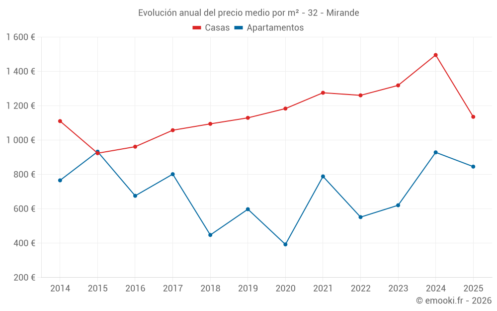 ¿Cuál es el precio por m2 de las casas en Mirande?