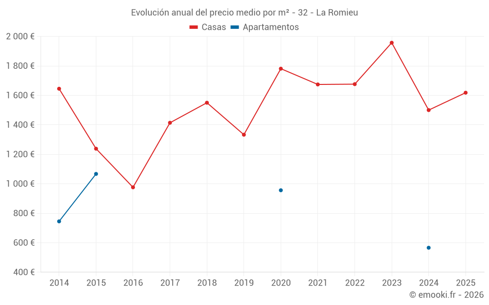 ¿Cuál es el precio por m2 de las casas en La Romieu?