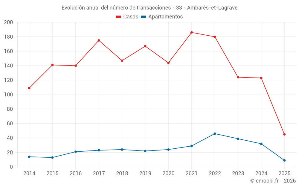 El precio mediano en las 45 transacciones de casas de los últimos 6 meses en la comuna de Ambarès-et-Lagrave fue de 2 635 € por metro cuadrado para un valor patrimonial medio de 215 000 €. Durante este período el 60% de las transacciones estuvieron entre 1 957 y 3 243 € por metro cuadrado (del 2º al 8º decil).