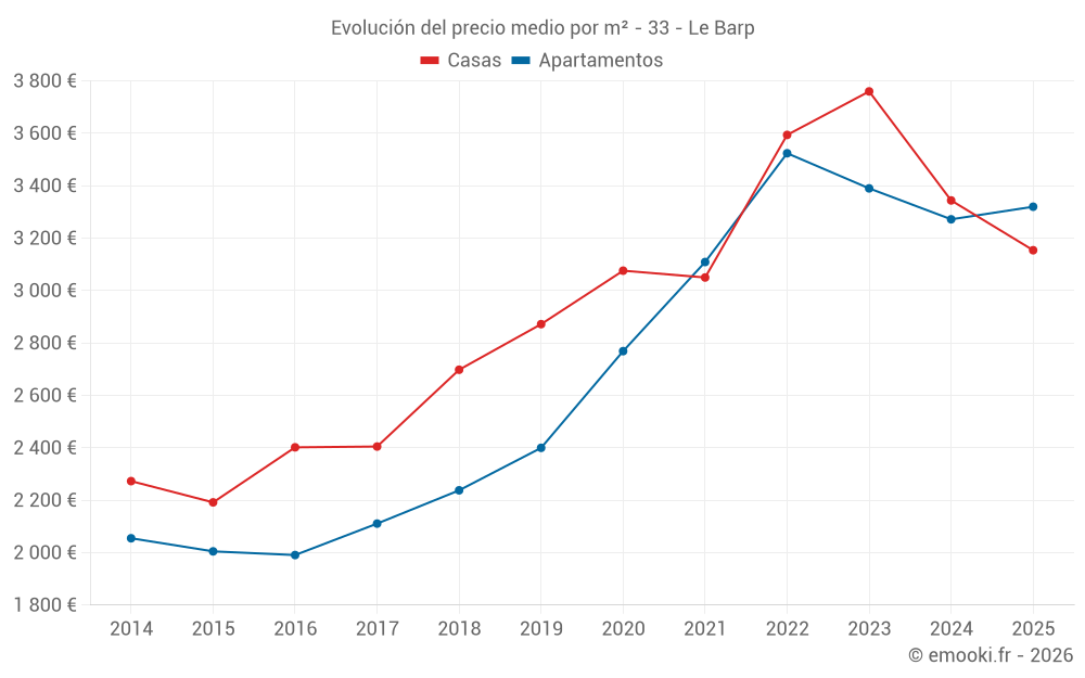 Mapa de precios de la vivienda en la comuna de Le Barp, elija una sección para ver las transacciones por parcela.