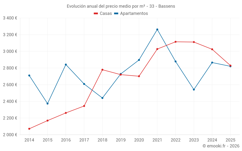¿Cuál es el precio por m2 de las casas en Bassens?