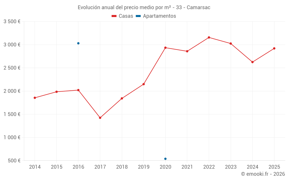 ¿Cuál es el precio por m2 de las casas en Camarsac?