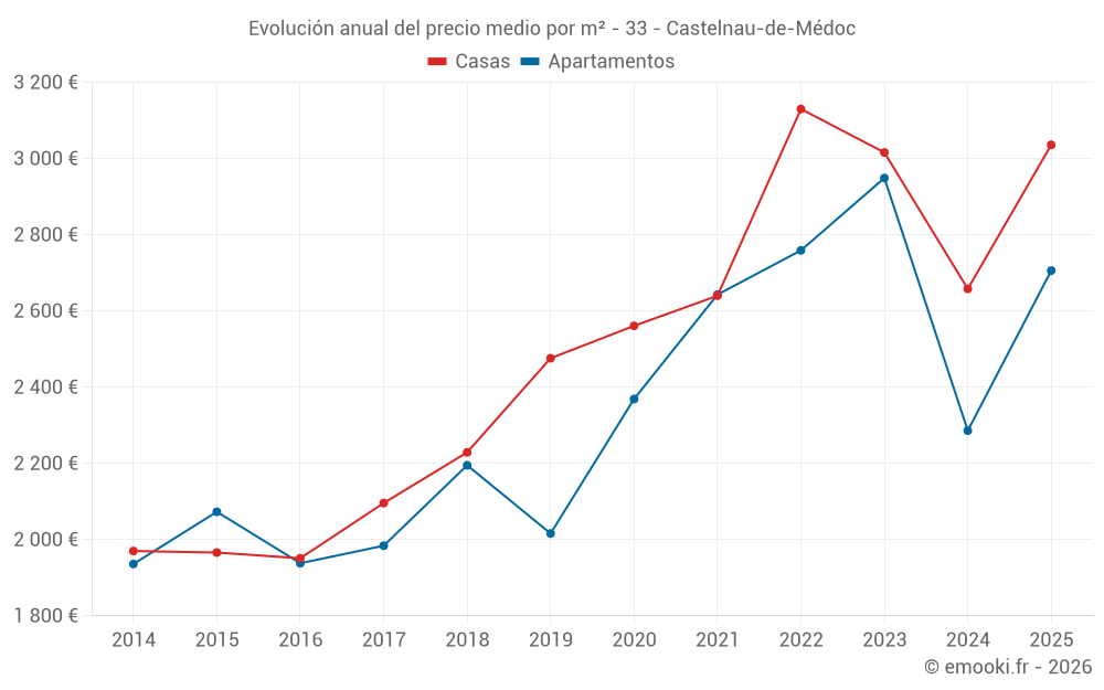 ¿Cuál es el precio por m2 de las casas en Castelnau-de-Médoc?