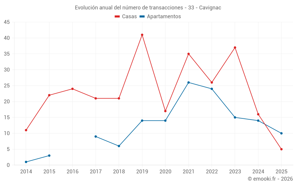 El precio mediano en las 19 transacciones de apartamentos de los últimos 12 meses en la comuna de Cavignac fue de 1 930 € por metro cuadrado para un valor patrimonial medio de 95 000 €. Durante este período el 60% de las transacciones estuvieron entre 1 749 y 2 046 € por metro cuadrado (del 2º al 8º decil).
