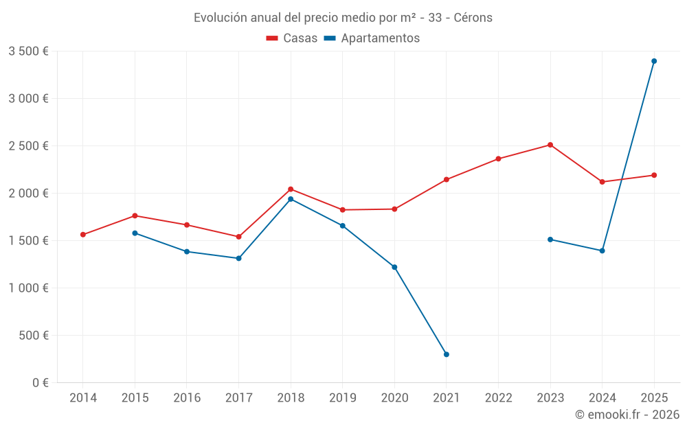 ¿Cuál es el precio por m2 de las casas en Cérons?