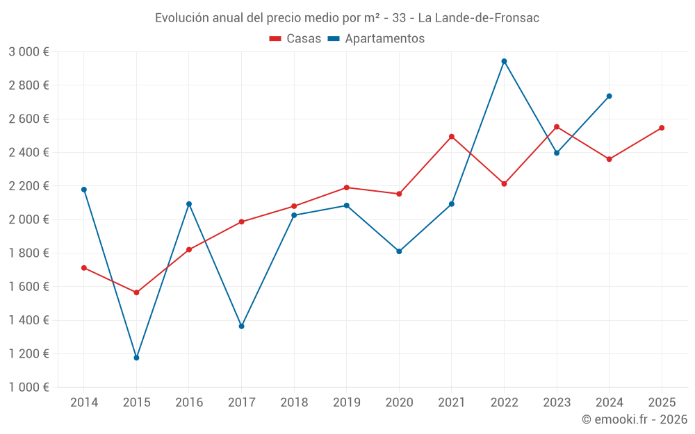 ¿Cuál es el precio por m2 de las casas en La Lande-de-Fronsac?