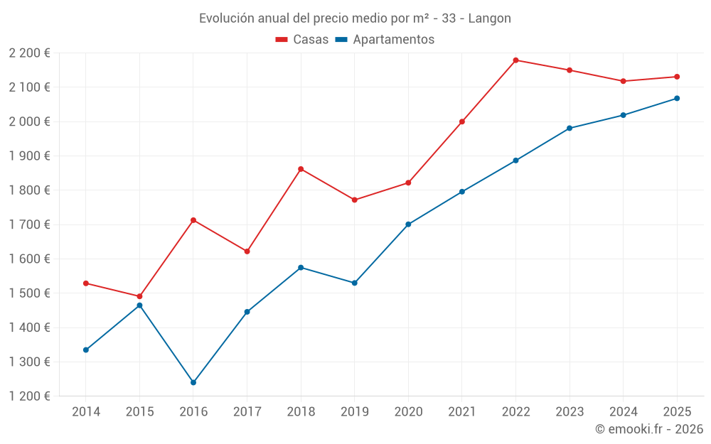 ¿Cuál es el precio por m2 de las casas en Langon?
