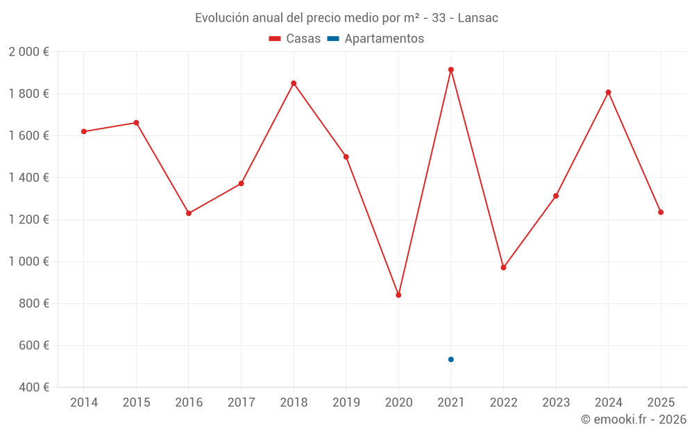 Mapa de precios de la vivienda en la comuna de Lansac, elija una sección para ver las transacciones por parcela.