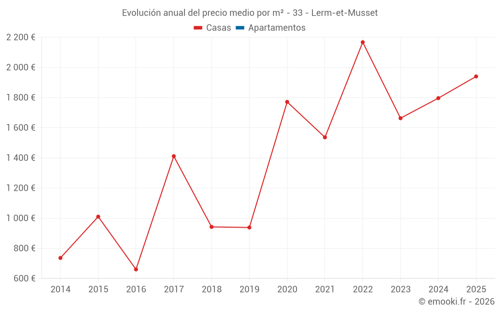 El precio por m² de las casas ha disminuido un 10% desde 3 años, pero ha aumentado un 194% en 9 años.