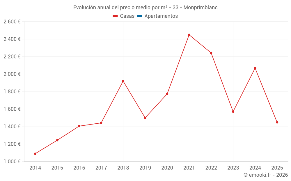 Evolución del precio medio por m² de las casas