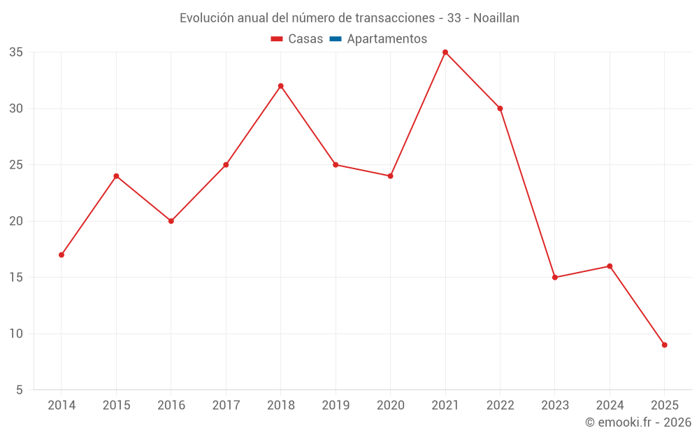 El precio mediano en las 19 transacciones de casas de los últimos 12 meses en la comuna de Noaillan fue de 2 041 € por metro cuadrado para un valor patrimonial medio de 201 000 €. Durante este período el 60% de las transacciones estuvieron entre 1 110 y 2 528 € por metro cuadrado (del 2º al 8º decil).