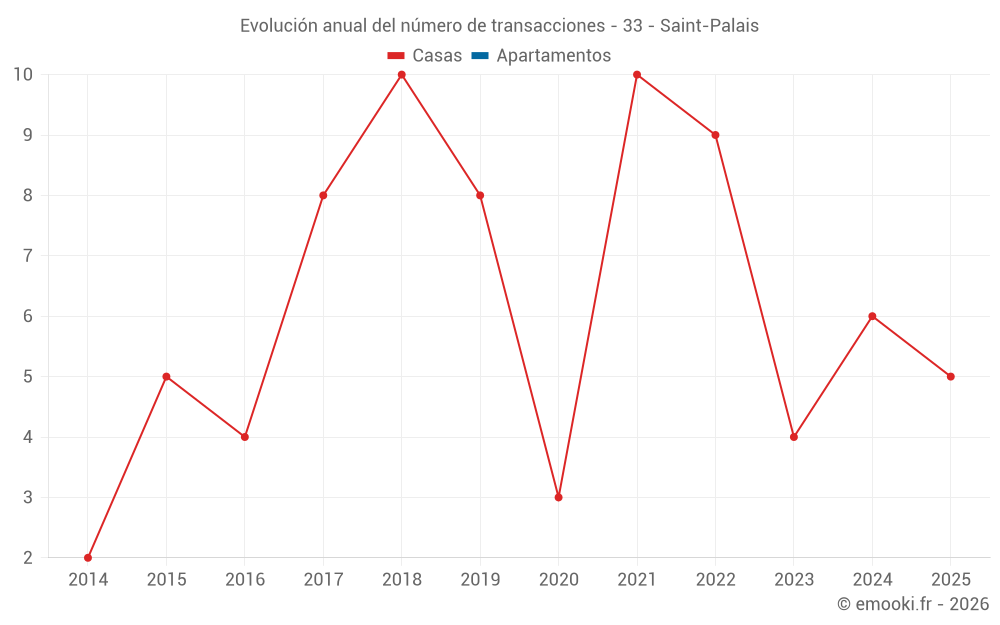 El precio mediano en las 15 transacciones de casas de los últimos 24 meses en la comuna de Saint-Palais fue de 1 064 € por metro cuadrado para un valor patrimonial medio de 95 000 €. Durante este período el 60% de las transacciones estuvieron entre 667 y 1 465 € por metro cuadrado (del 2º al 8º decil).