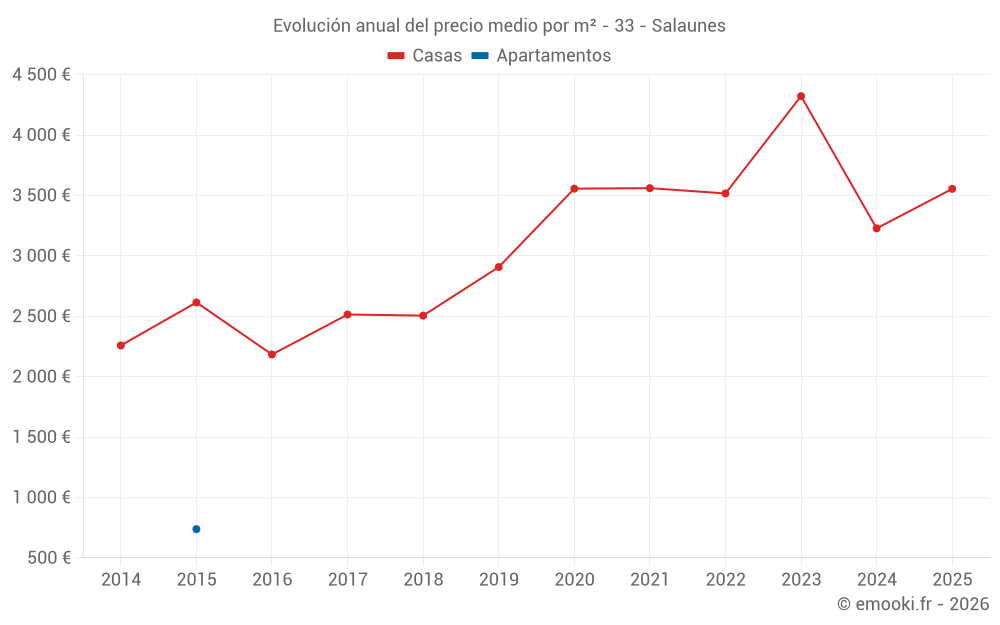 ¿Cuál es el precio por m2 de las casas en Salaunes?