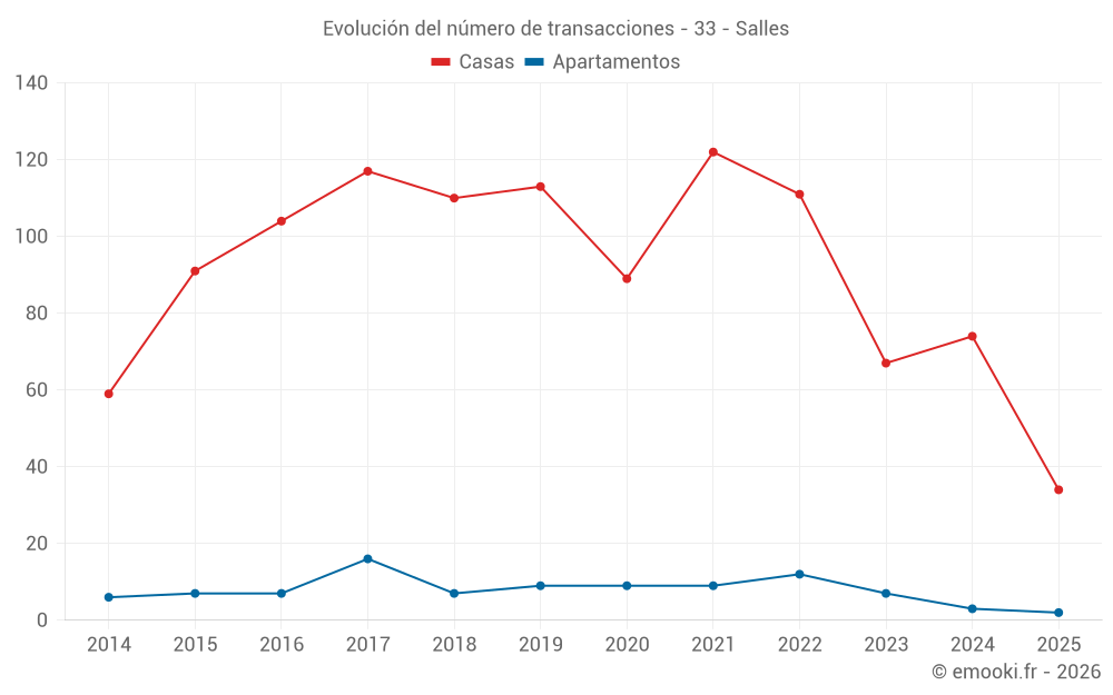 El precio mediano en las 34 transacciones de casas de los últimos 6 meses en la comuna de Salles fue de 2 890 € por metro cuadrado para un valor patrimonial medio de 289 704 €. Durante este período el 60% de las transacciones estuvieron entre 1 896 y 3 646 € por metro cuadrado (del 2º al 8º decil).