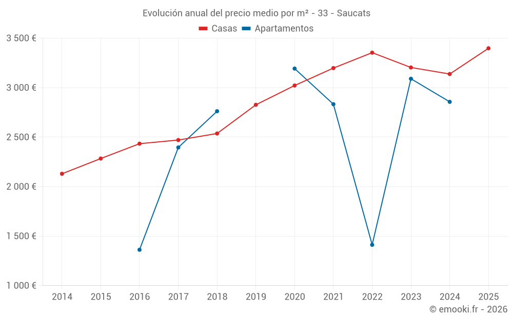 ¿Cuál es el precio por m2 de las casas en Saucats?