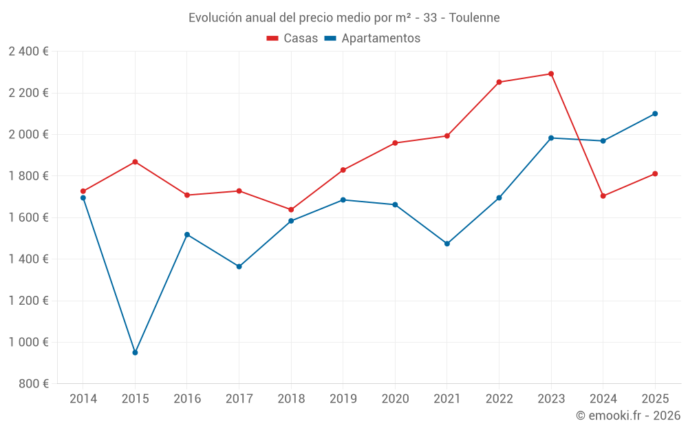 ¿Cuál es el precio por m2 de las casas en Toulenne?