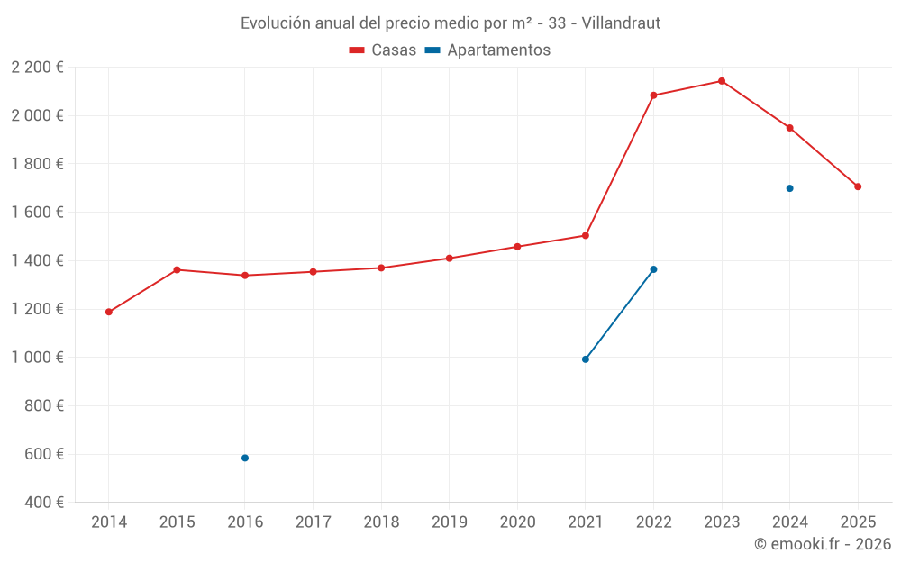¿Cuál es el precio por m2 de las casas en Villandraut?