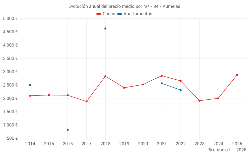 Evolución del precio medio por m² de las casas