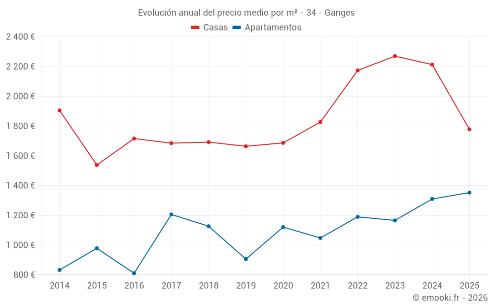 ¿Cuál es el precio por m2 de las casas en Ganges?