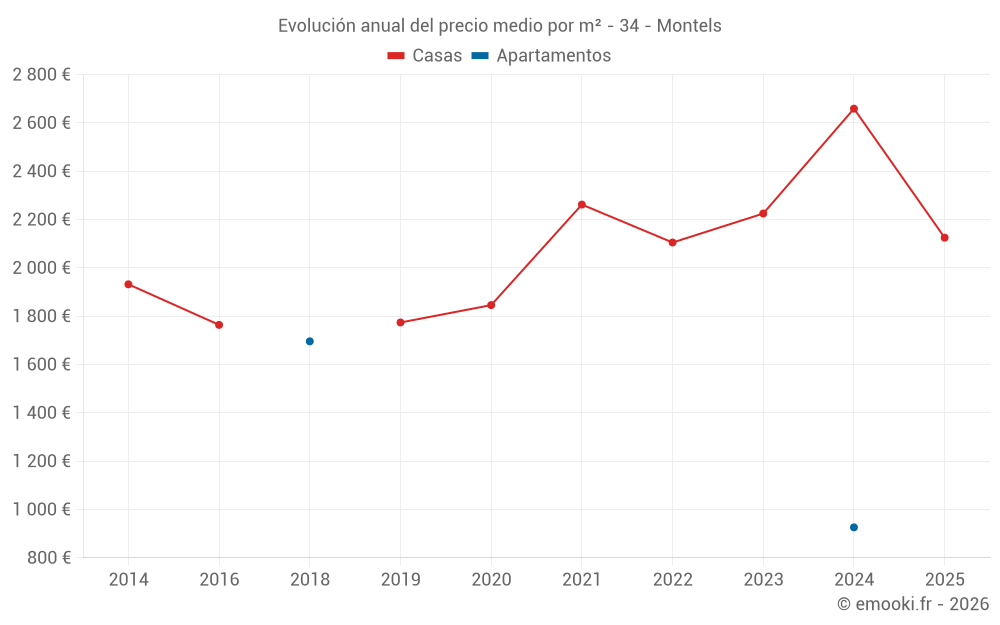 Evolución del precio medio por m² de las casas