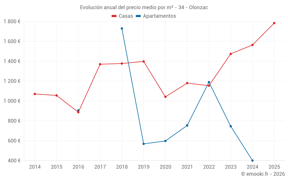 ¿Cuál es el precio por m2 de las casas en Olonzac?