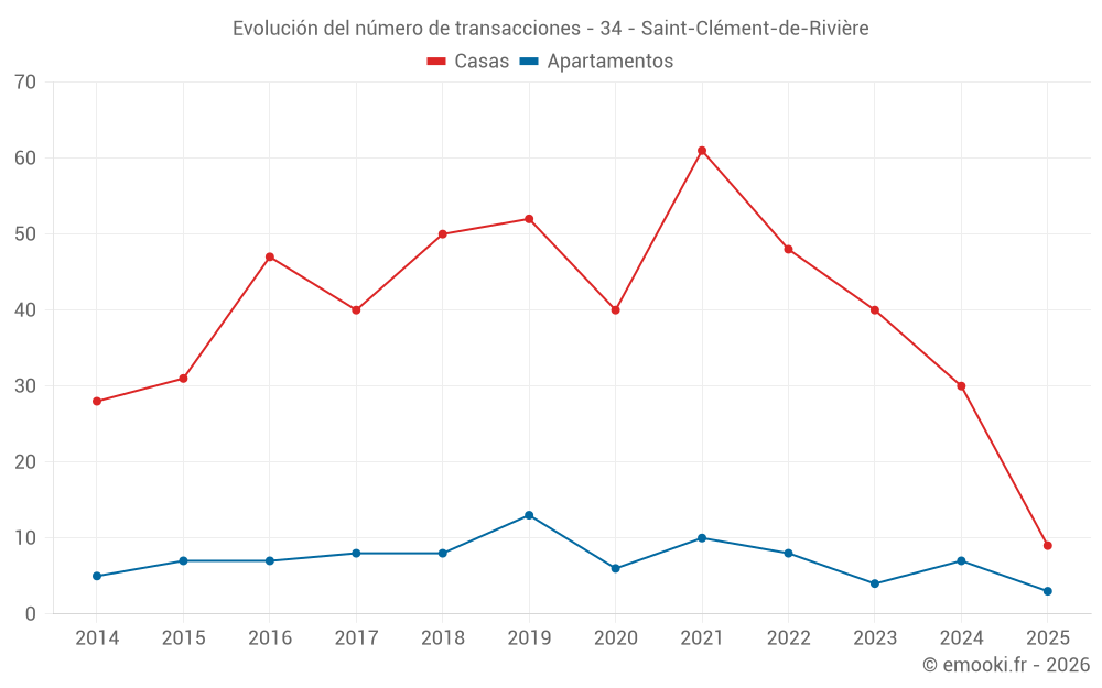 Mapa de precios de la vivienda en la comuna de Saint-Clément-de-Rivière, elija una sección para ver las transacciones por parcela.