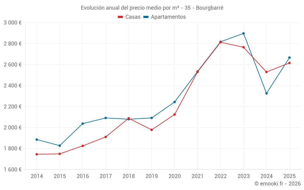 ¿Cuál es el precio por m2 de las casas en Bourgbarré?