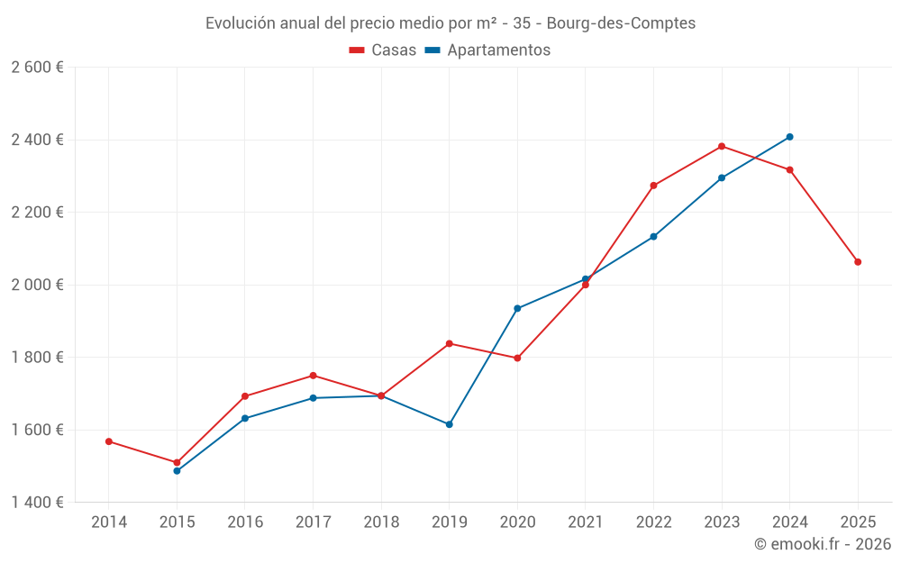 ¿Cuál es el precio por m2 de las casas en Bourg-des-Comptes?