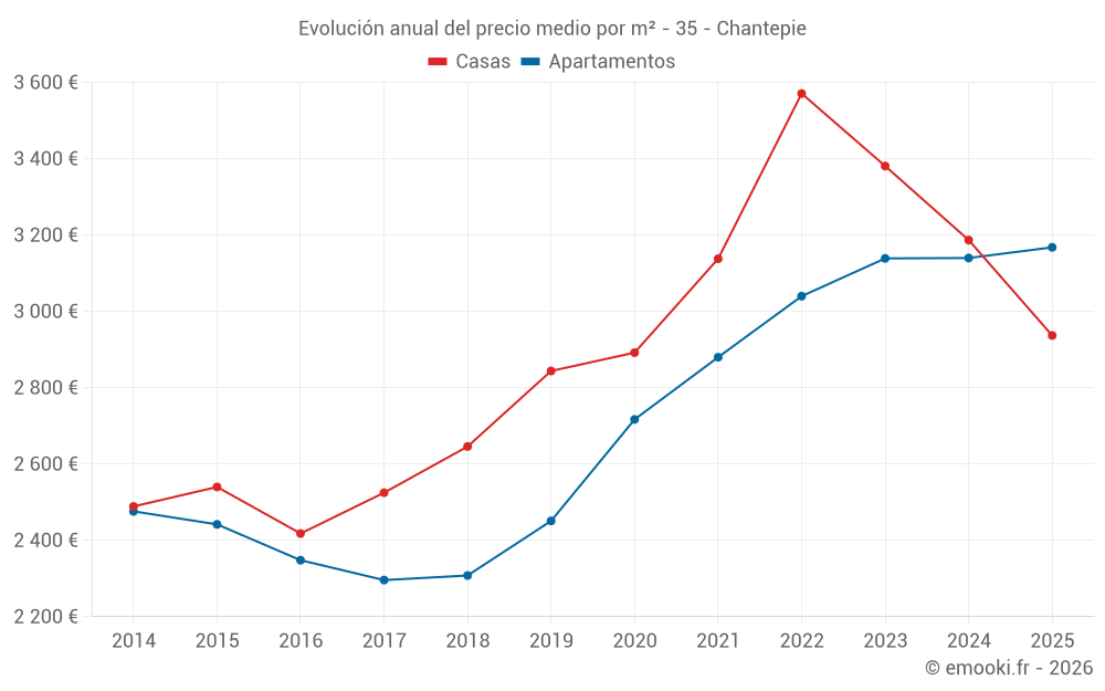 ¿Cuál es el precio por m2 de las casas en Chantepie?