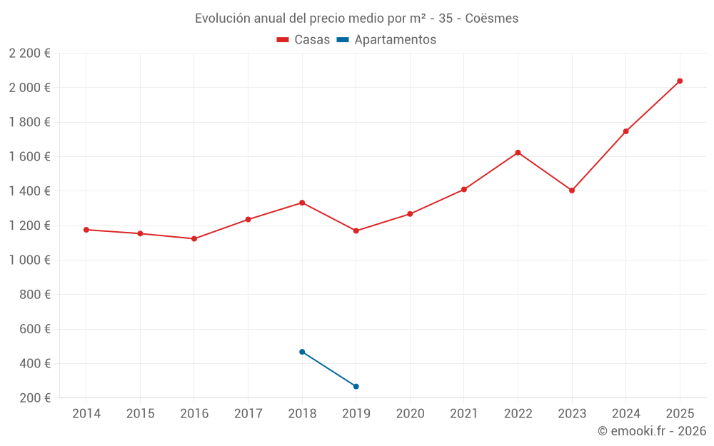 ¿Cuál es el precio por m2 de las casas en Coësmes?