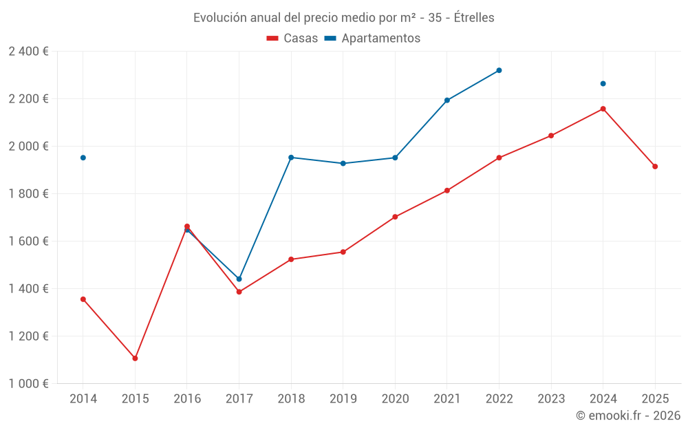 ¿Cuál es el precio por m2 de las casas en Étrelles?