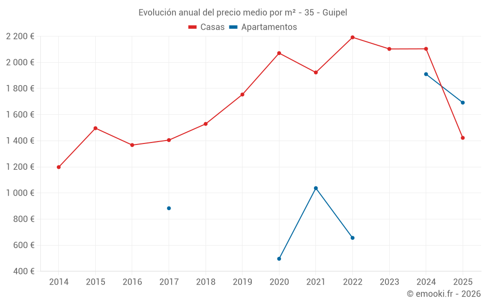 ¿Cuál es el precio por m2 de las casas en Guipel?
