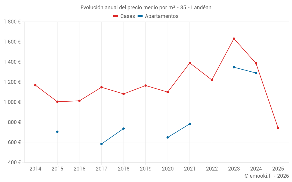 ¿Cuál es el precio por m2 de las casas en Landéan?