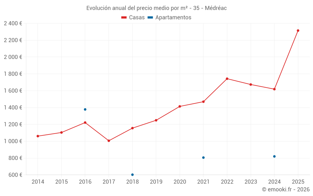 Evolución del precio medio por m² de las casas