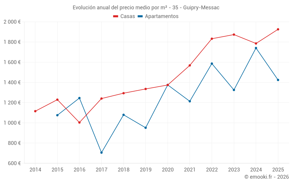 ¿Cuál es el precio por m2 de las casas en Guipry-Messac?
