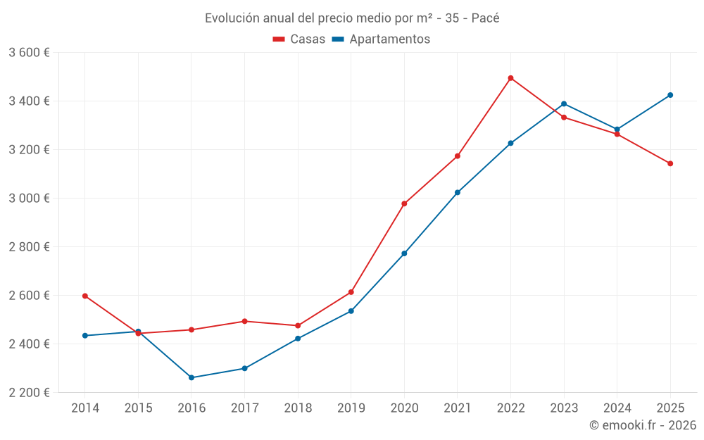 ¿Cuál es el precio por m2 de las casas en Pacé?
