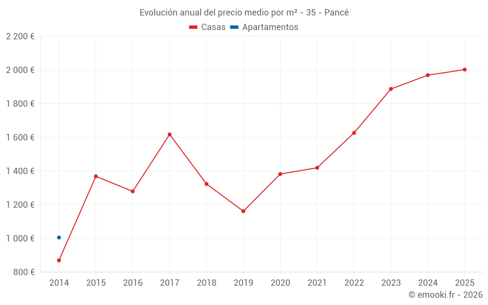 Evolución del precio medio por m² de las casas