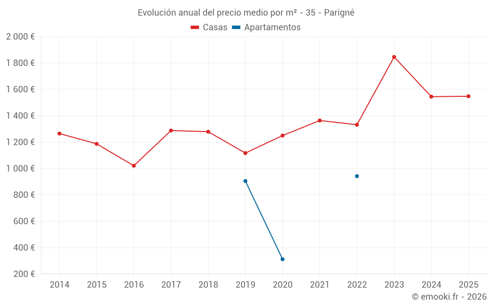 ¿Cuál es el precio por m2 de las casas en Parigné?