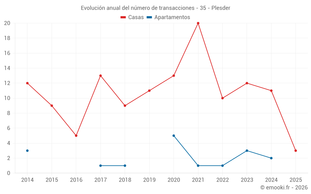 El precio mediano en las 16 transacciones de casas de los últimos 24 meses en la comuna de Plesder fue de 1 444 € por metro cuadrado para un valor patrimonial medio de 149 500 €. Durante este período el 60% de las transacciones estuvieron entre 714 y 2 250 € por metro cuadrado (del 2º al 8º decil).