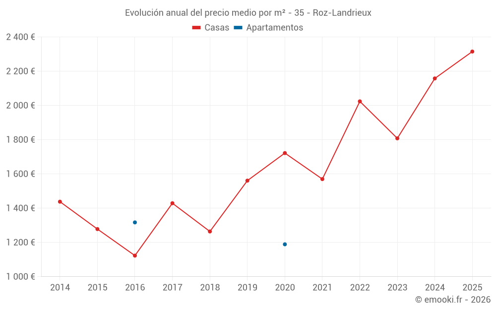 ¿Cuál es el precio por m2 de las casas en Roz-Landrieux?
