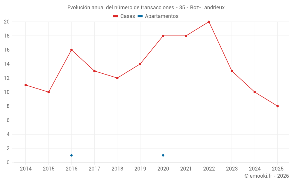 El precio mediano en las 25 transacciones de casas de los últimos 24 meses en la comuna de Roz-Landrieux fue de 2 083 € por metro cuadrado para un valor patrimonial medio de 195 000 €. Durante este período el 60% de las transacciones estuvieron entre 1 665 y 2 494 € por metro cuadrado (del 2º al 8º decil).