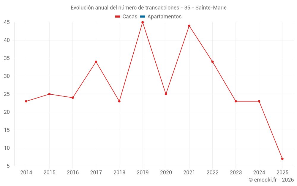 El precio mediano en las 27 transacciones de casas de los últimos 12 meses en la comuna de Sainte-Marie fue de 1 877 € por metro cuadrado para un valor patrimonial medio de 140 000 €. Durante este período el 60% de las transacciones estuvieron entre 1 490 y 2 480 € por metro cuadrado (del 2º al 8º decil).