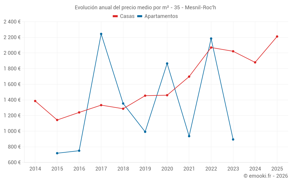 ¿Cuál es el precio por m2 de las casas en Mesnil-Roc'h?