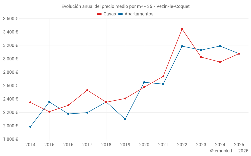 ¿Cuál es el precio por m2 de las casas en Vezin-le-Coquet?