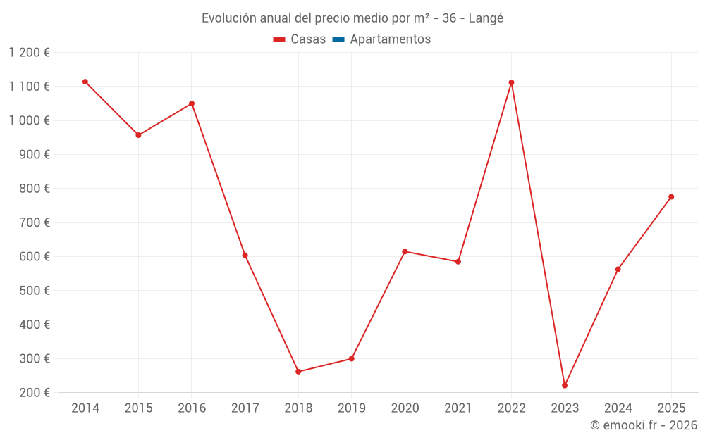 El precio por m² de las casas ha aumentado un 38% desde 1 año, pero ha disminuido un 30% en 11 años.