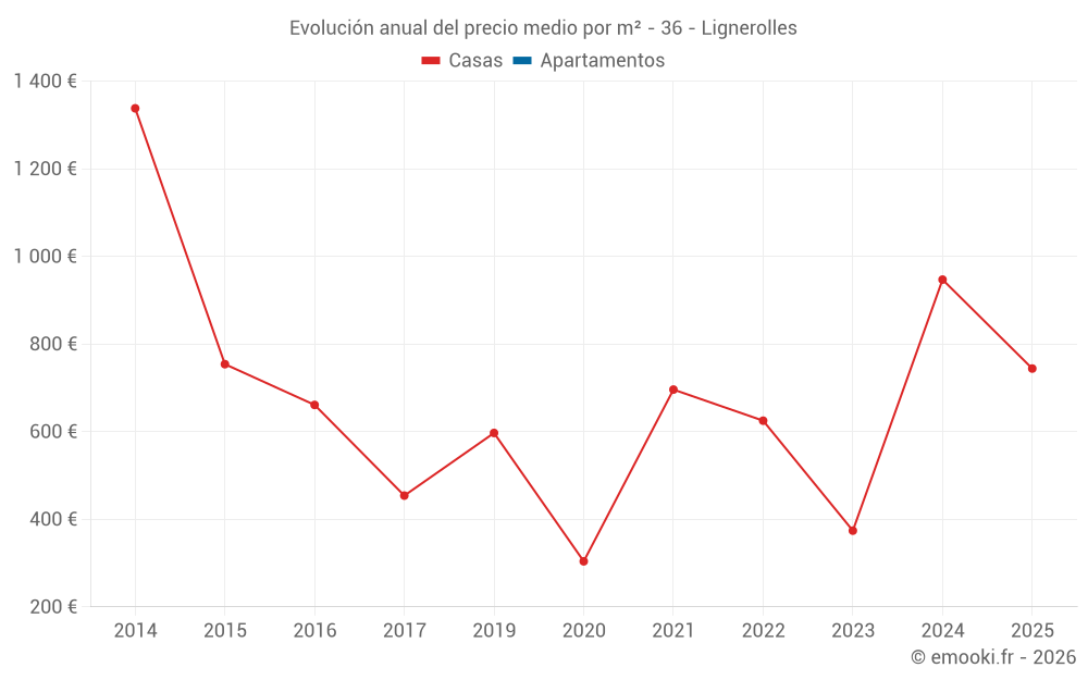 El precio por m² de las casas ha disminuido un 21% desde 1 año, pero ha aumentado un 145% en 5 años.