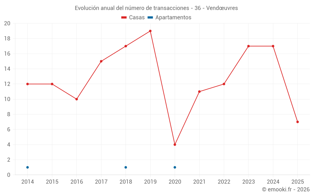 El precio mediano en las 37 transacciones de casas de los últimos 24 meses en la comuna de Vendœuvres fue de 852 € por metro cuadrado para un valor patrimonial medio de 60 000 €. Durante este período el 60% de las transacciones estuvieron entre 467 y 1 422 € por metro cuadrado (del 2º al 8º decil).