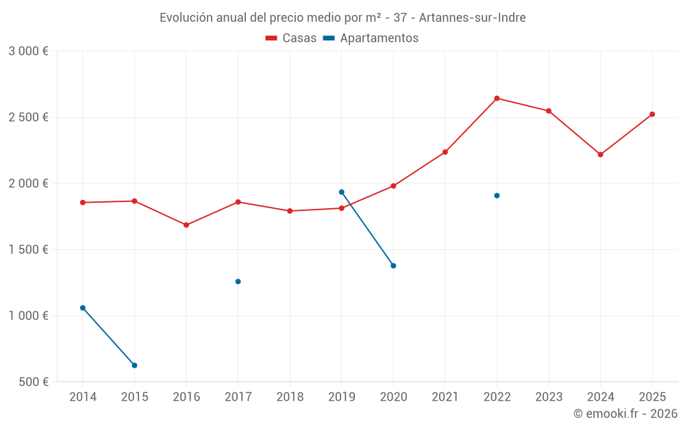¿Cuál es el precio por m2 de las casas en Artannes-sur-Indre?